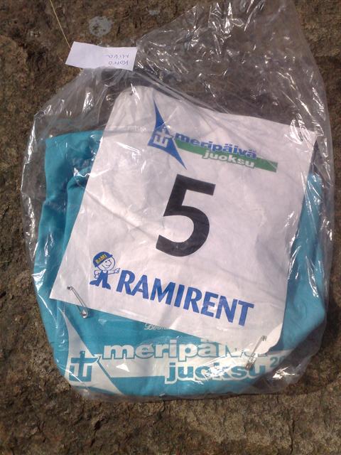 In der finnischen Stadt Kotka, an der Ostküste des finnischen Meerbusens, 60 Grad nördlicher Breite, wird alljährlich zu den Meripäivät (so etwas wie die Kieler Woche ein paar Nummern kleiner) ein Lauf ausgetragen. Dabei ist vieles anders, als man es von Volksläufen in Deutschland kennt. Mit 20 € relativ teuer, aber dafür inzwischen perfekt organisiert. Dafür bekommt man ein T-Shirt, eine Live-Band im Stadion zur Unterhaltung, Sachpreise für die Gewinner, Strecken- und Zielverpflegung und eine Medaille. Dabei ist es Skandinavien üblich, dass die Medaille hochwertig geprägt ist, aber kein Halsband besitzt. Auch bekommt man sein T-Shirt mit der Startnummer, an der die Sicherheitsnadeln schon angebracht, komplett verpackt. In der finnischen Stadt Kotka, an der Ostküste des finnischen Meerbusens, 60 Grad nördlicher Breite, wird alljährlich zu den Meripäivät (so etwas wie die Kieler Woche ein paar Nummern kleiner) ein Lauf ausgetragen. Dabei ist vieles anders, als man es von Volksläufen in Deutschland kennt. Mit 20 € relativ teuer, aber dafür inzwischen perfekt organisiert. Dafür bekommt man ein T-Shirt, eine Live-Band im Stadion zur Unterhaltung, Sachpreise für die Gewinner, Strecken- und Zielverpflegung und eine Medaille. Dabei ist es Skandinavien üblich, dass die Medaille hochwertig geprägt ist, aber kein Halsband besitzt. Auch bekommt man sein T-Shirt mit der Startnummer, an der die Sicherheitsnadeln schon angebracht, komplett verpackt.