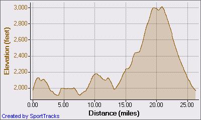 Die Strecke wurde nun wirklich unangenehm anstrengend. Wir mussten noch einige Meilen auf dem Highway - und damit auch aus dem State Park hinaus - weiterlaufen. Es ging zum großen Teil nur in einer gemütlicheren Gangart als Laufen den Berg hinauf. Auf der anderen Straßenseite kamen mir mit einem breiten Lächeln im Gesicht und jeweils einem freundlichen Gruß, bereits die etwas schnelleren Läufer entgegen. Dort hoch droben sah ich einen Reisebus zu uns herunterfahren und ich wünschte mir sehnlichst, den erwarteten Wendepunkt noch vor dem sichtbar höchsten Punkt zu erreichen. Nein, nach den Meilenmarkern zu urteilen musste es nach ganz oben weitergehen. Komisch, kein Läufer überholte mich hier. Dabei war ich wirklich nicht schnell unterwegs. Es schlossen aber einige Läufer von hinten etwas auf. Oben angekommen ... endlich geschafft. Es ging noch einen weiteren Kilometer relativ flach bis zum letzten Wendepunkt am heutigen Tag.