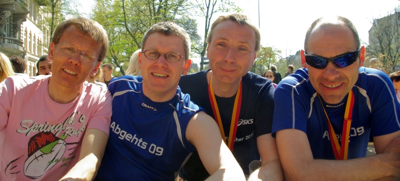Kuusi Abgehts jäsentä (Stefan, Lisa, Frank, Ralf, Christine ja Mika) olivat tämän vuotisella hampurin maratoonilla. Viisi juoksi ja Lisa avusti reitin reunalla. Sää oli, niinkuin melkein aina, lämmin, noin 20 astetta ja aurinkoinen. Kaikki selvisivät maalin ja olivat tyytyväisiä suoritukseen. Ralf jäi selvästi ajassa 3:58:11 alle neljän tunnin ja oli iloinen että polvi kesti. Frank harjoittelu-lenkillä jopa 6 sekunttia nopeampi kuin viiko aikaisemmin. Stefanilla matka taipui 3:48:50:ssä ja Mika oli hieman nopeampi kuin itse oli ajatellut ajassa 2:53:52. Maratonin jälkeen nautittiin aurikoisesta iltapäivästa kahvin, kakun ja oluen parissa.