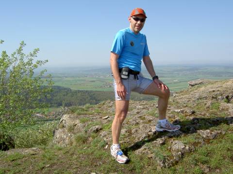 Am Ende der langen Steigung waren auch meine Kräfte etwas aufgebraucht und ich bevorzugte es, die letzten 100m zu gehen bis die Strecke wieder einigermaßen zügig belaufen werden konnte. Viel Zeit verlor ich dabei nicht, denn an diesem Punkt wäre ich durch weiterlaufen nicht viel schneller gewesen. Es ging jetzt relativ flach auf einem schönen Höhenweg weiter Richtung Staffelberg. Der markante, weithin sichtbare Staffelberg erhebt sich über der Stadt Bad Staffelstein. Der Staffelberg ist mit seinen 539 Metern über dem Meeresspiegel eines der beliebtesten Ausflugsziele der Region. Seine Besonderheit verdankt der Berg seinem Hochplateau und genau dieses war auch das Ziel der Läuferschar. Die letzten Meter hinauf zum Plateau wurden von den meisten Läufern nur gehend gemeistert, wie auch von mir. Es war einfach zu steil zum Hochlaufen. Das Plateau auf dem Staffelberg ist wirklich das Highlight der Stecke. Einfach grandios diese Ausblicke nach unten. Ich verspürte sofort die Lust mir hier einen Grill aufzubauen und den Tag mit weniger Laufstress fortzusetzen.