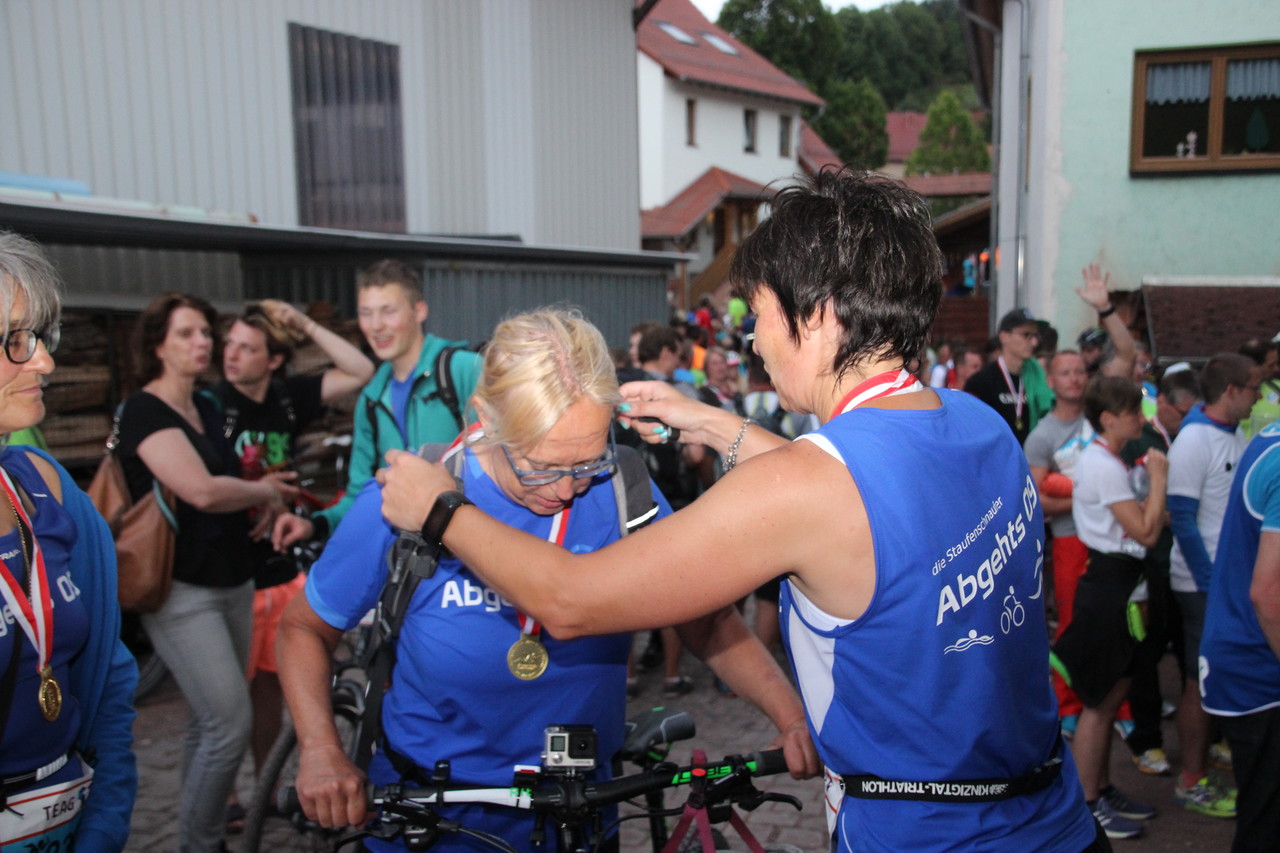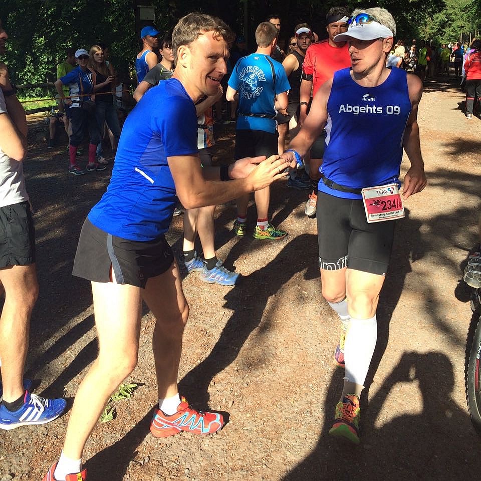 Im Ziel wartete Peter startbereit und der Wechsel ging prima über die Bühne. Mit einer Zeit von 1:30:57 und Platz 70 war ich äußerst zufrieden. Insgesamt war ich schneller als geplant und konnte Peter etwas Puffer mitgeben.