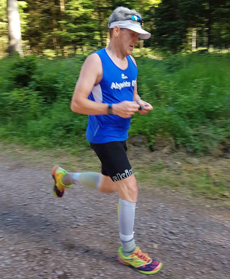 Meine Aufgabe war es, die Etappe 7 von Oberhof/ Am Grenzadler nach Neue Ausspanne für mein Abgehts09 Team zu rennen. Es war der kürzeste aller Abschnitte und wies die wenigsten Höhenmeter auf. Insgesamt waren trotzdem 13,68 Km zu laufen über 187 Höhenmeter hoch, aber auch mit 303 Metern bergab.Ich war im Vorfeld sehr nervös. Zur Vorbereitung habe ich Wochen vorher begonnen unsere „normale“ Donnerstagslaufstrecke in Münster bereits in Hofheim bei uns zu Hause zu starten. Diese wurde somit um 4 km verlängert auf 15km und um 70 Höhenmeter erschwert auf ca. 255. Eine Hitzewelle steigerte während der Vorbereitungszeit schon den Trainingseffekt. Diese Läufe habe ich zusätzlich zum normalen Laufprogramm regelmäßig absolviert.