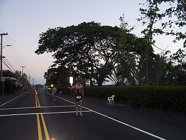 Langsam wird es dunkel. Das Laufen auf dem bald stockdunklen Highway ist ein besonderes Erlebnis. In der Dunkelheit ist man ganz allein, schemenhaft kommen Läufer entgegen, ab und an überholt mich einer. Da kommt der innere Schweinehund ganz groß raus: 'Du hast noch so viel Zeit, keiner sieht wenn Du gehst, brauchs t Dich nicht zu quälen!' Und so benötige ich für den Marathon über eine Stunde länger als geplant. Erst die letzten 2-3 Meilen lege ich wieder etwas zu, um wenigstens unter 15 1/2 Stunden zu bleiben.Schließlich höre ich nach 15:28:18 Std. das allseits bekannte und so heiß ersehnte 'You Are An Ironman' und freue mich riesig, dass ich mir den Traum, auf Hawaii zu finishen, erfüllt habe. Ich war als Teilnehmer bei einer Weltmeisterschaft.